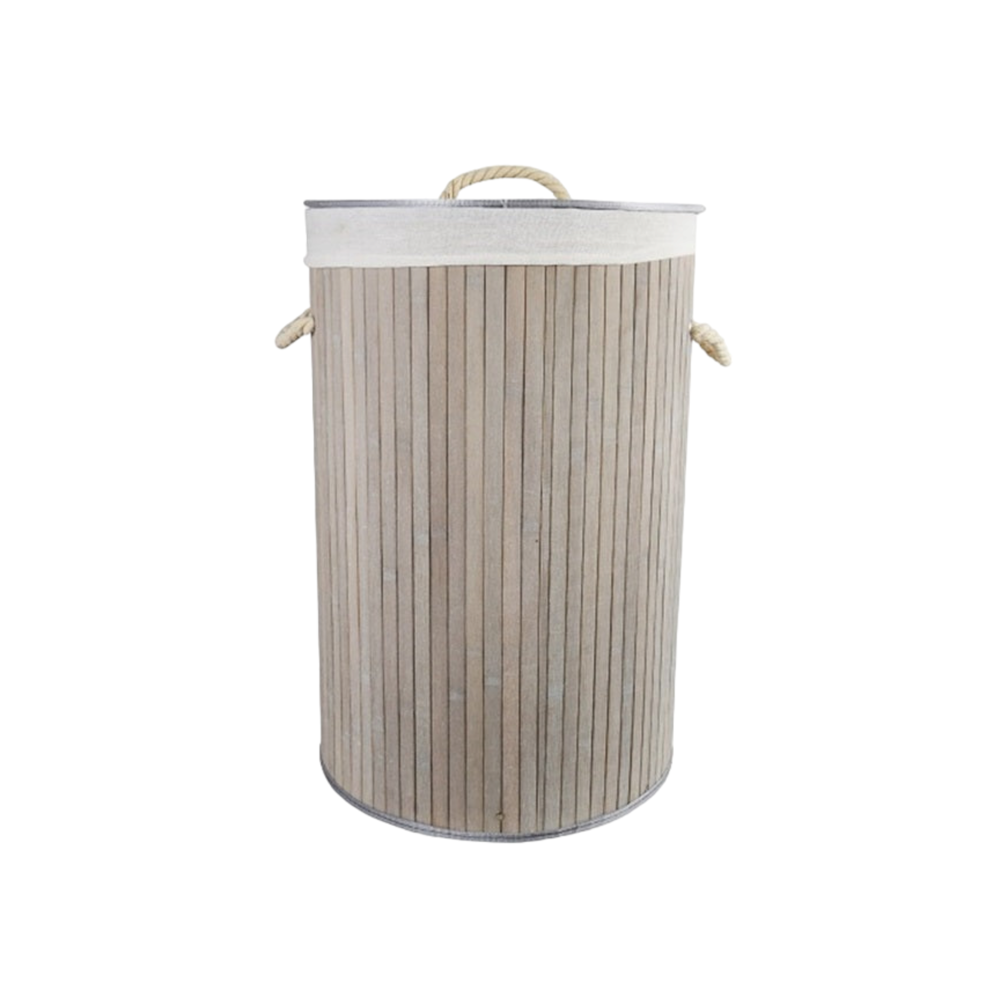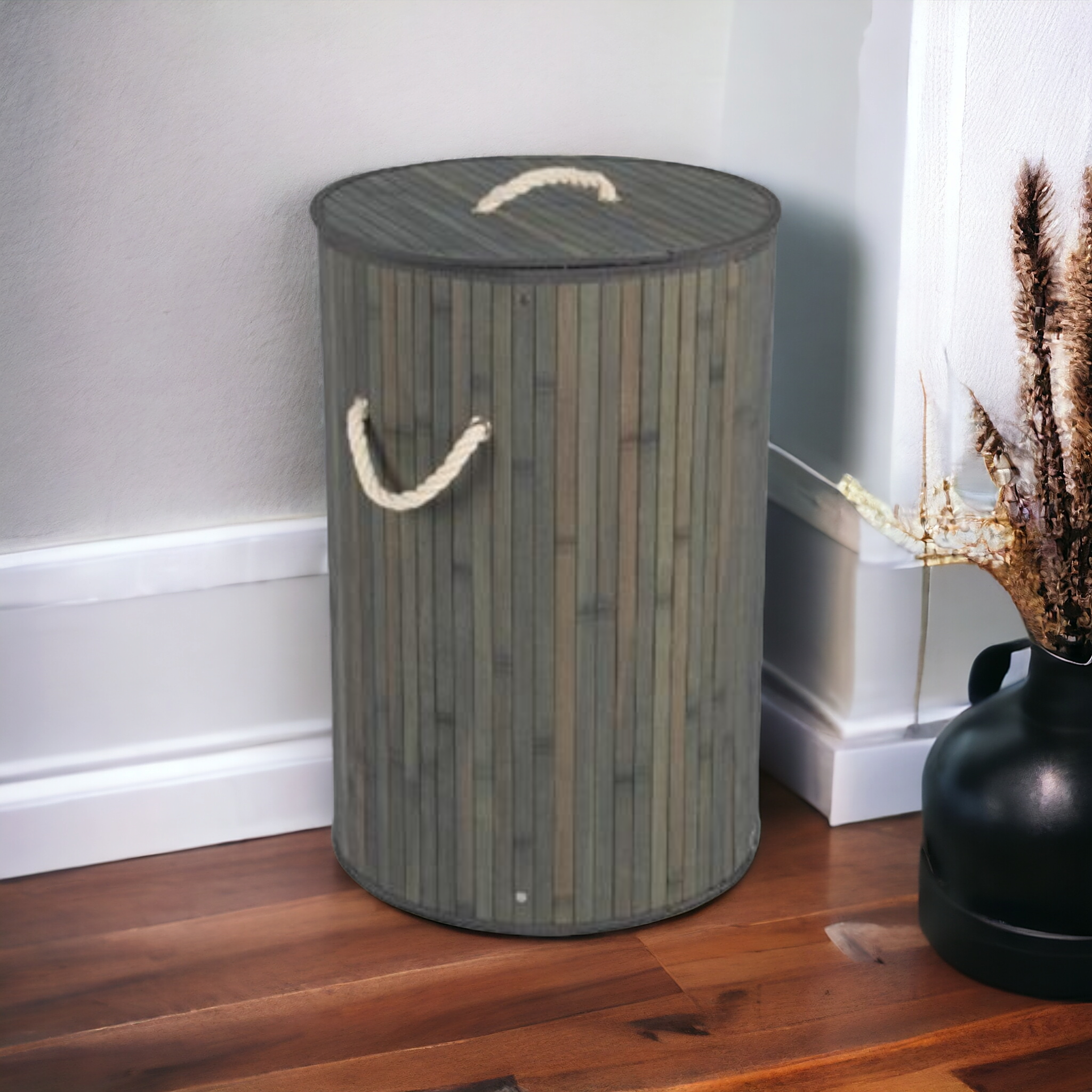 This round grey bamboo laundry basket, model 15608, is a durable and aesthetically pleasing addition to any room in your home. Its foldable design and lid make it convenient and discreet, while its dimensions of 40cm x 60cm make it perfect for storing your laundry. Upgrade your laundry routine with this stylish and functional bamboo bin.