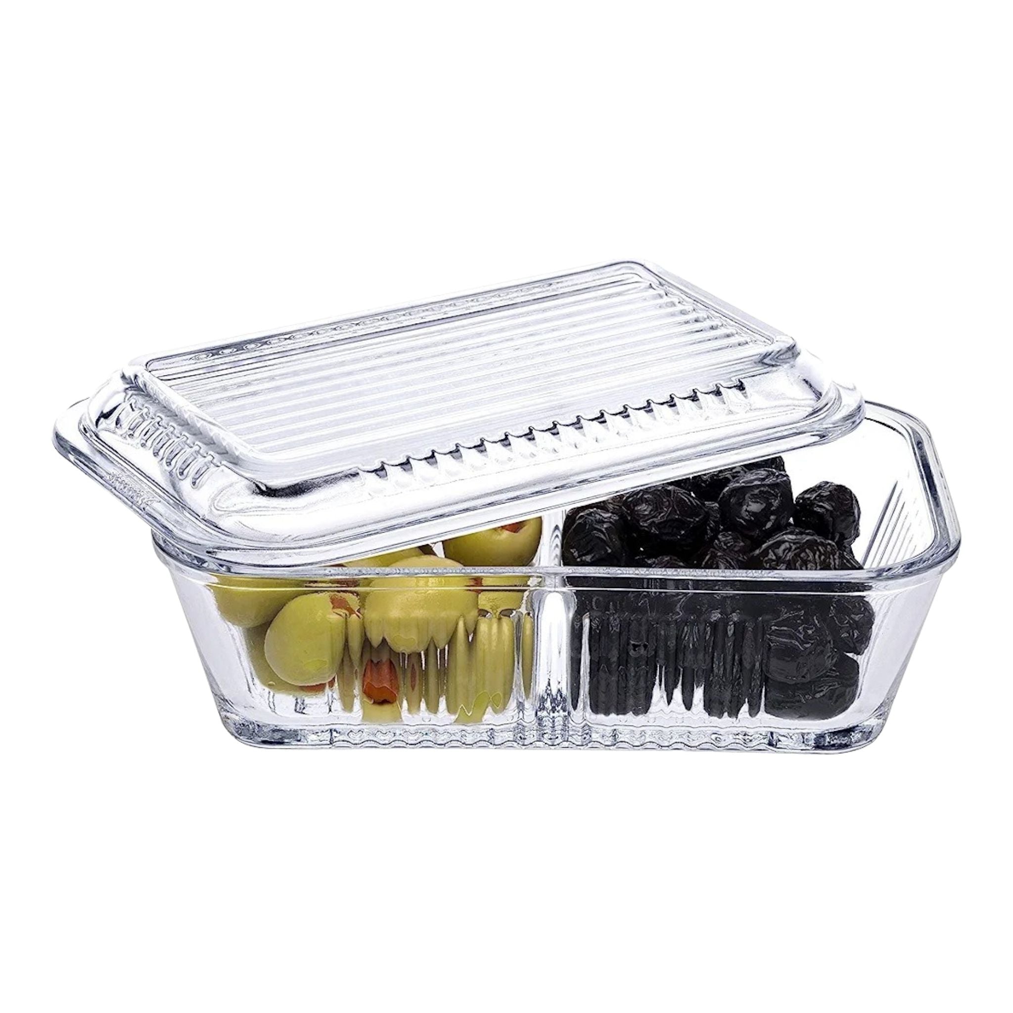 - Pasabahce Storage 2 Compartment Butter and Honey Dish 480mm with Lid 23894