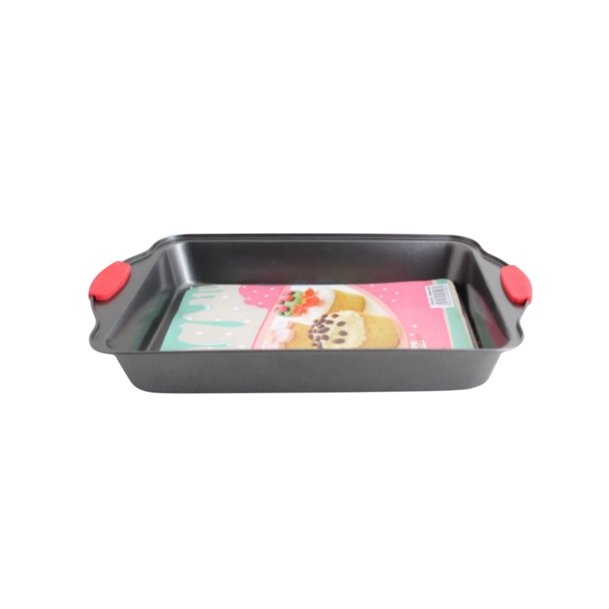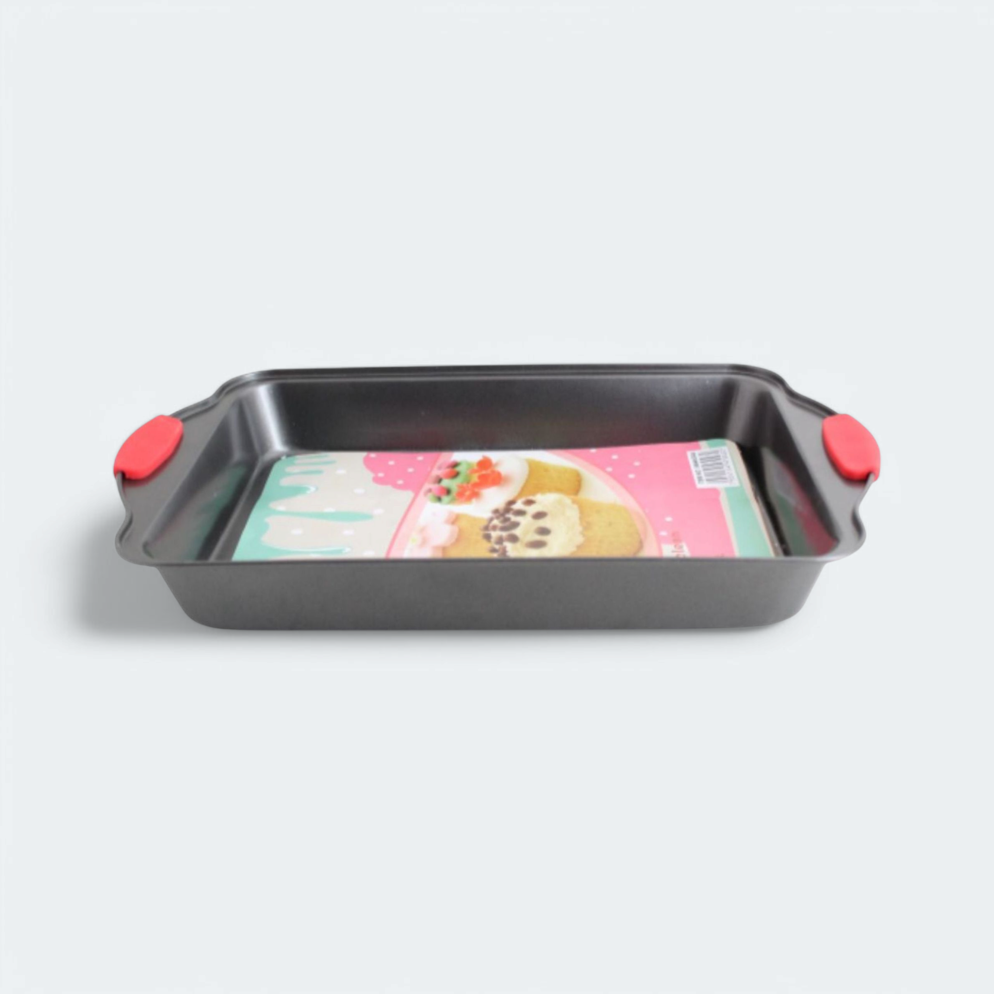 Bake with ease using this Grey Cookie Sheet. The ideal universal baking pan ideal for baking both desserts and food alike. With a red rubber grip making it easy to move food from your oven to the table.