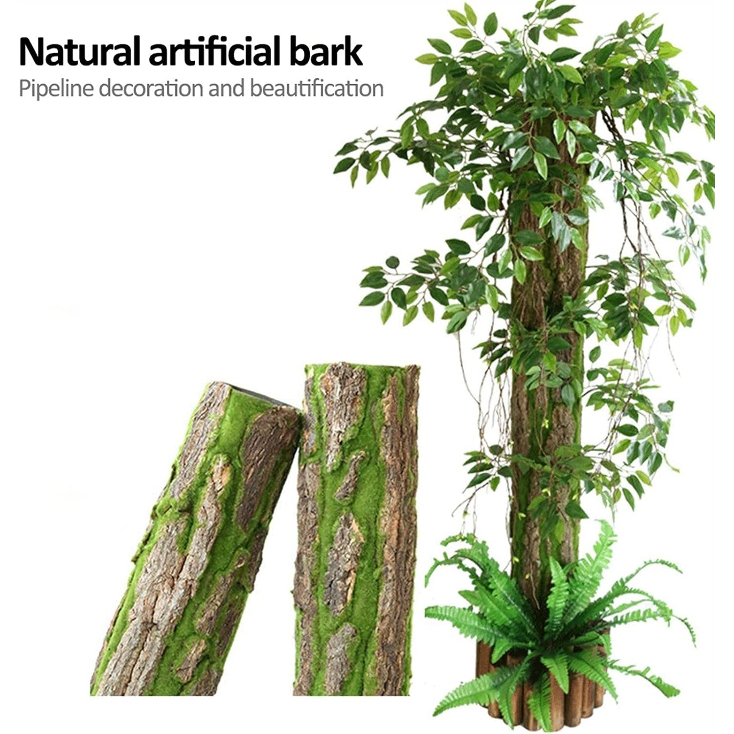 Add a splash of nature in your home with this Artificial Tree Bark with Moss Mat for Decoration! This 50cmx100cm mat is perfect for any room in the house, bringing a beautiful natural feel with its realistic tree bark design and lush moss accents. Add a new ambiance to your decor with this unique and vibrant piece!