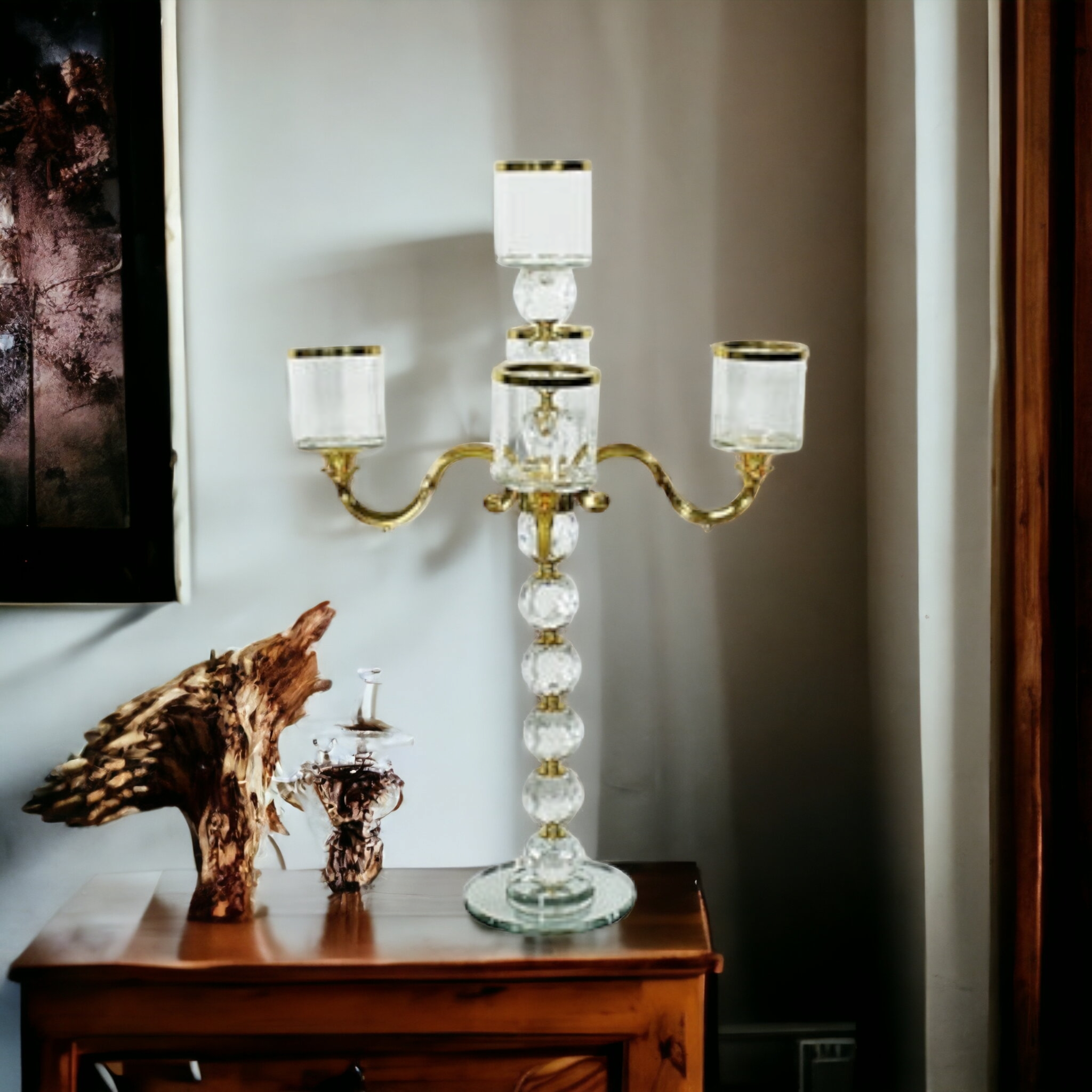 Glass Candle Holder with Gold Trim Large 49cm