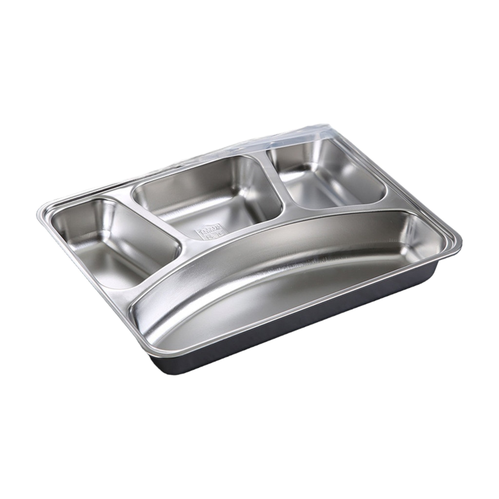 Canteen Lunch Tray Stainless Steel 4-Division Square - Cafeteria Feeding Plate